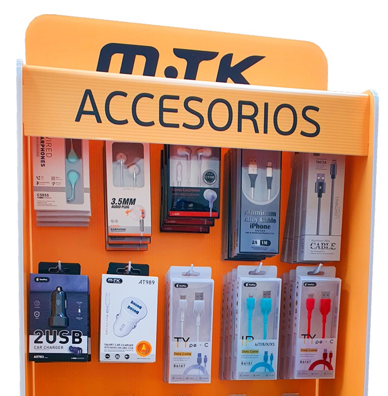 La marca MTK en Argentina mediante sus representantes e importadores exclusivos, impulsan que las Estaciones comercialicen una amplia gama de productos indicados para el consumo masivo, como lo son todos los Accesorios de Telefonía Celular, Cables de Datos, Cargadores de Autos y Pared, Auriculares, Conversores de FM, Soportes y muchos más.