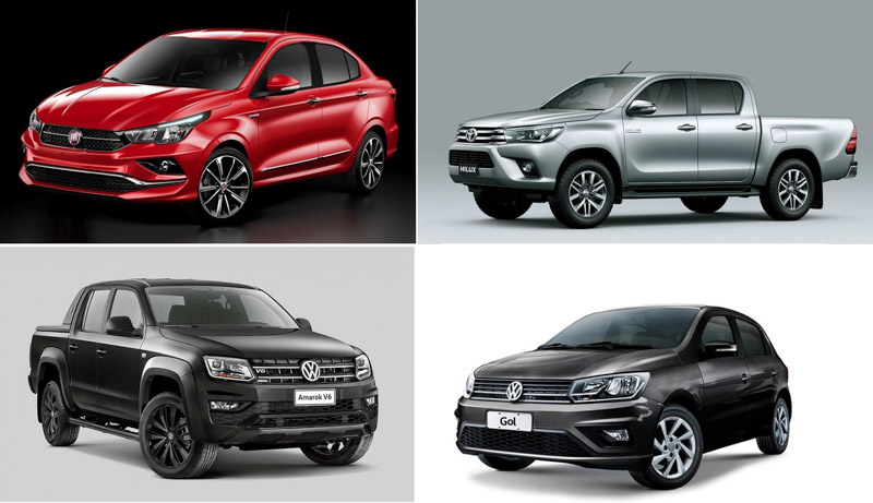 Si armamos un ranking, el mismo se compone por Fiat Cronos, Toyota Hilux, Volkswagen Amarok, Volkswagen Gol Trend, Toyota Etios, Peugeot 208 (argentino), Ford Ranger (argentino), Toyota Yaris, Chevrolet Onix y Toyota Corolla.