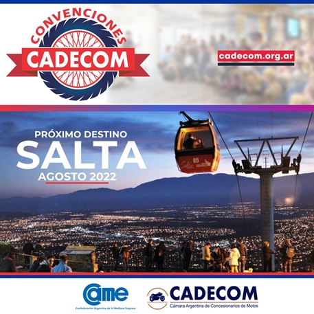 Luego del éxito de la convención en Chaco, la CADECOM (Cámara Argentina de Concesionarios de Motos) llega a Salta, para trabajar junto a los concesionarios de motos del NOA. “Tenemos muchas propuestas para todos los colegas del norte argentino, y nos trasladamos hacia allí, con el apoyo de la Confederación Argentina de Mediana Empresa (CAME), para celebrar un inigualable encuentro de trabajo”, explicaron desde la entidad.