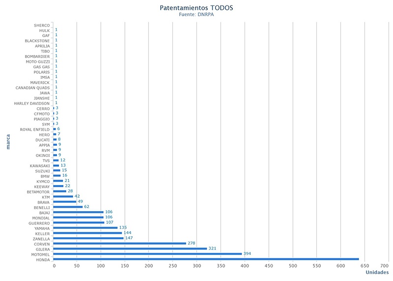 CAFAM anunció que en lo que va del año se patentaron 193.940 motovehículos, lo que significa una caída interanual del 27,43%. Del acumulado del año, el 91,10 % fue de origen nacional y el 8,90% importadas. Y las de baja cilindrada lideran el ranking 2020 de las más elegidas por los argentinos. Siendo el 75% de las motos patentadas del año de hasta 150cc inclusive.