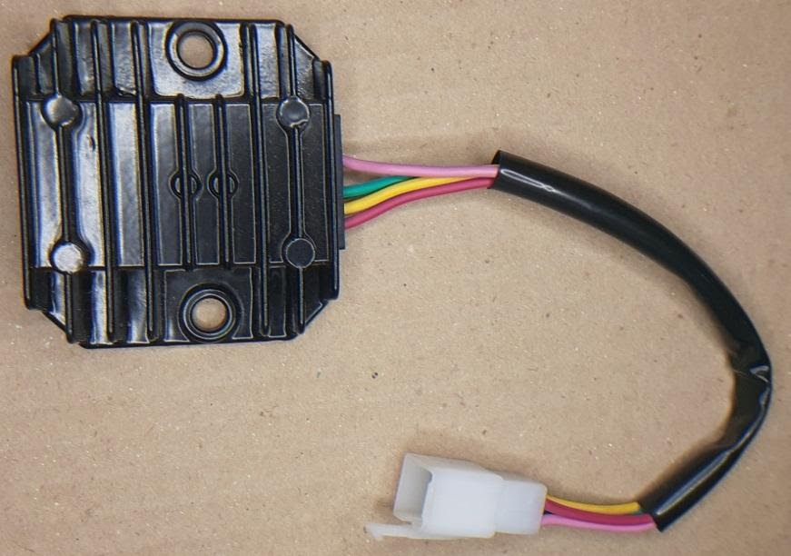 Recordemos que el Regulador de Tensión es el dispositivo electrónico encargado de mantener la batería cargada siempre que la moto esté encendida. Trabaja con la señal alterna generada por el volante magnético de la moto.
