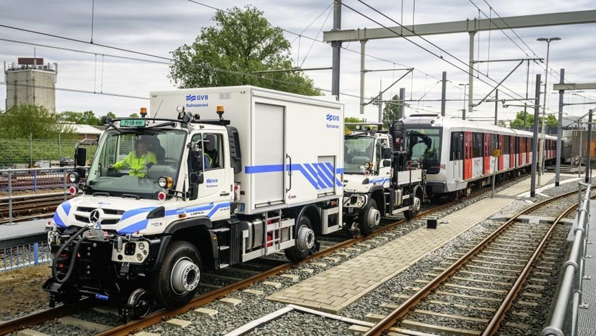 Esta operación ha sido posible gracias a que la empresa GVB Amsterdam recibió la segunda unidad del Unimog road-railer. Se trata del modelo U 423, capaz de desarrollar una potencia de 231 CV y 900 Nm de par. En el caso de la adaptación para circular a través de los raíles corrió a cargo de la empresa Zagro en Bad Rappenau.