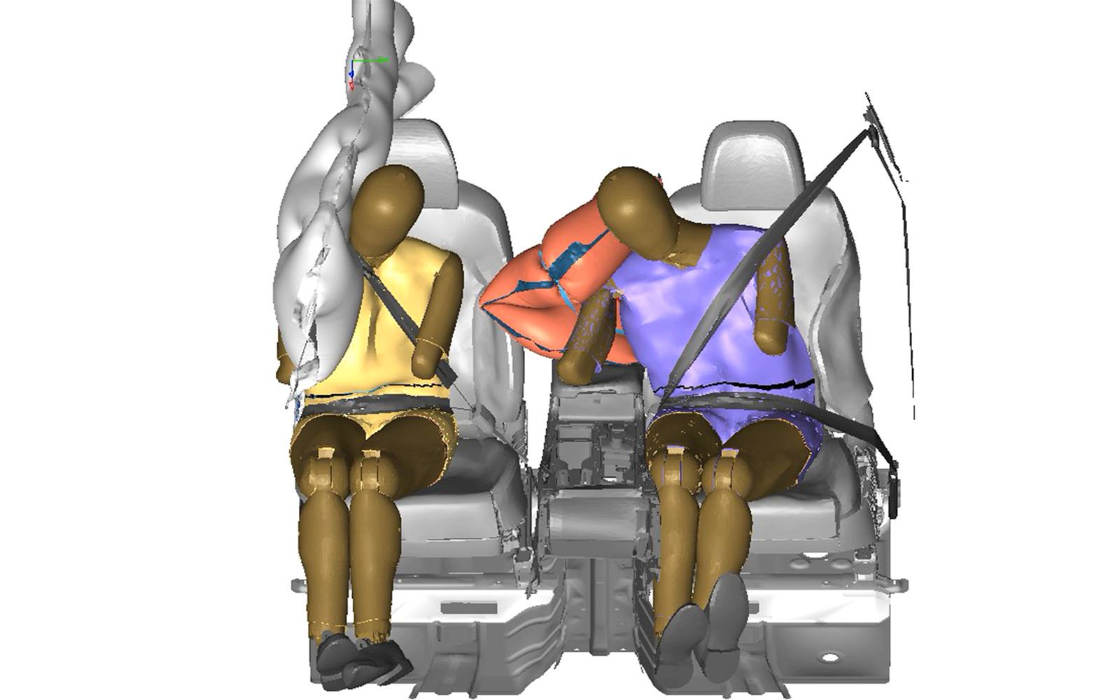 El anhelo es que el nuevo airbag central disminuya en un 80% las lesiones en la cabeza causadas por los pasajeros que chocan entre sí.