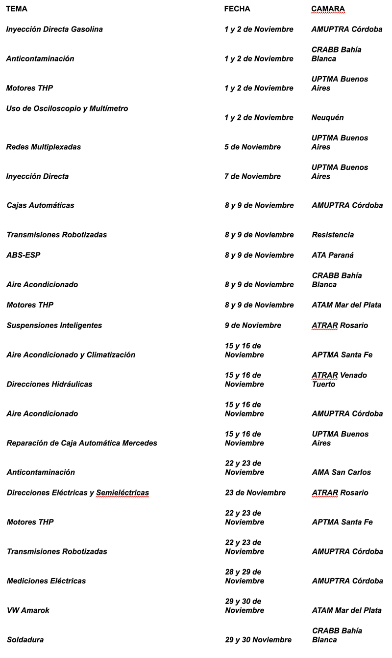 Estos son los Cursos del mes de Noviembre en sus respectivas Cámaras y Zona FAATRA.