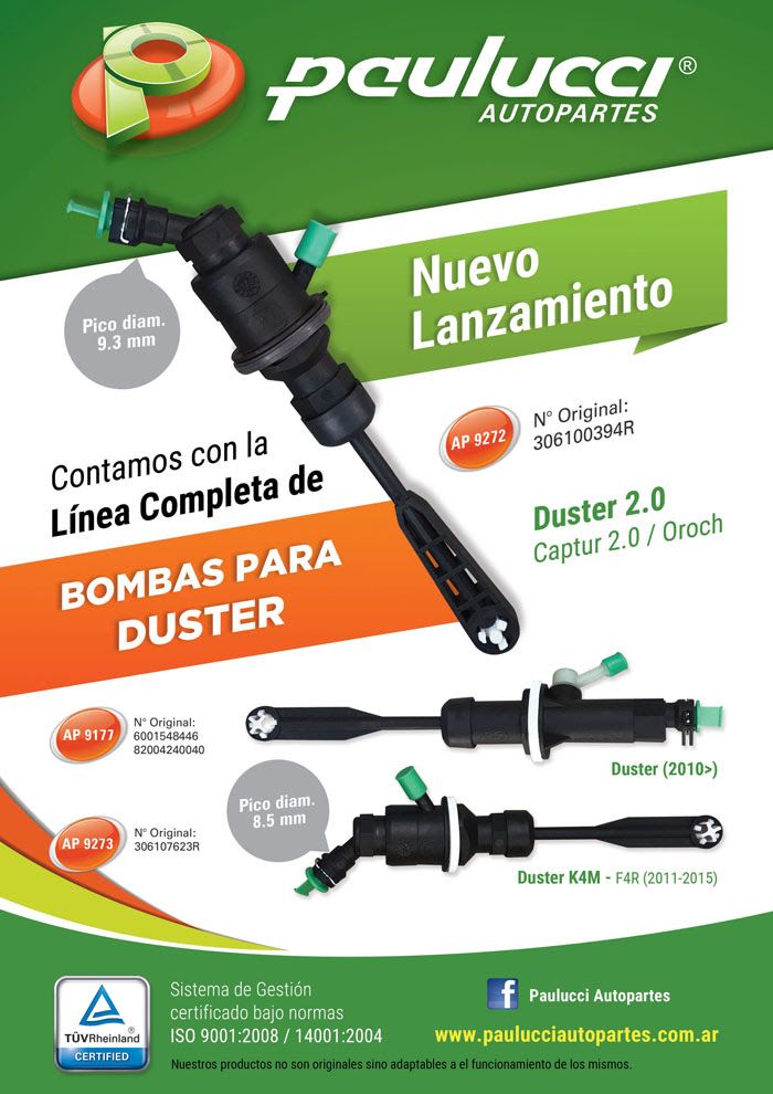 Paulucci Autopartes presenta el nuevo Cilindro Maestro de Embrague para los vehículos Duster 2.0, Captur 2.0, Oroch.