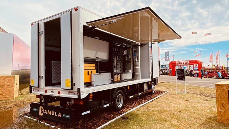 Esta Unidad fue desarrollada para Mercedes Benz Argentina, para ser utilizada como Taller Móvil para la atención en terreno de sus Usuarios.