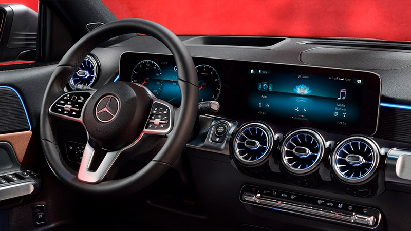 El tablero de instrumentos consta de un solo cuerpo básico con entrantes ópticos en la zona del asiento del conductor y del acompañante. Por delante del conductor se encuentra el puesto de conducción widescreen. El manejo y la visualización se basan en el sistema MBUX (Mercedes-Benz User Experience). Además, cuenta con techo corredizo panorámico.