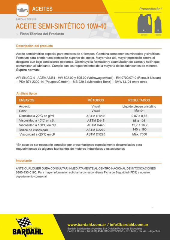 Aceite Semi-Sintético Top lub 10W-40 de BARDAHL