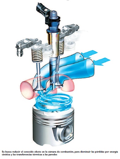 El primer paso al respecto, consta en atenuar el efecto Swirl en la cámara de combustión, es decir el movimiento de rotación del aire dentro de la misma (movimiento turbulento), con la finalidad de disminuir las pérdidas de energía cinética y las transferencias térmica a las paredes.