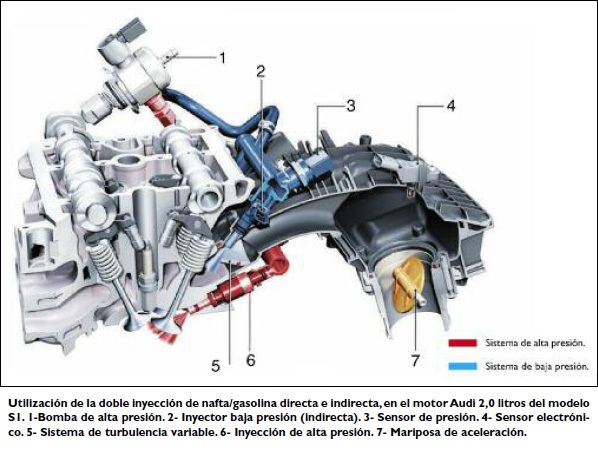 Nos hemos ocupado hace tiempo, de la doble inyección de nafta/gasolina que se aplica por primera vez sobre un modelo de la industria japonesa LEXUS en el 2006. Sabemos también que, desde hace unos años, el sector de investigación y desarrollo del grupo Audi-Volkswagen con la inyección doble de nafta/gasolina directa e indirecta.