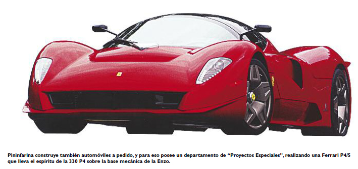 Sabemos que sobre la base de una Ferrari Enzo, Pininfarina construyó la famosa Ferrari 330 P4, célebre máquina de competición del año ’67, diseñada en el Centro de Estilo de Cambiano, y preparada por la División Proyectos Especiales de la firma de Turín, Pininfarina. Esta experiencia de la Ferrari P4/5, junto a la 612 Scaglietti, confirma Andrea Pininfarina –su presidente– cumple con la idea de realizar estos automóviles especiales, respondiendo a la iniciativa de la construcción de la Maserati Birdcage 75th.