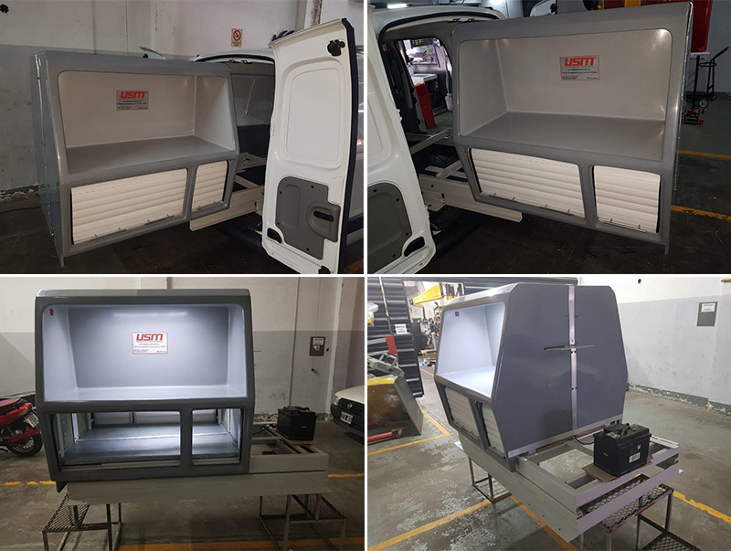 Dentro de los desarrollos de USM, te presentamos esta versátil opción montada sobre un Utilitario o Pick-Up Liviano - de cualquier marca, -para ubicar herramientas y servicios.