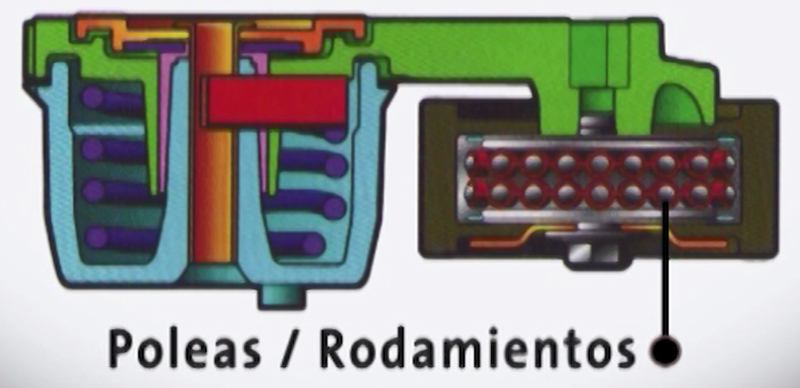 Mecanismo amortiguador: está compuesto de un polímero diseñado para absorber las vibraciones producidas por la rotación propia de la correa y por las producidas por el motor durante su funcionamiento.
