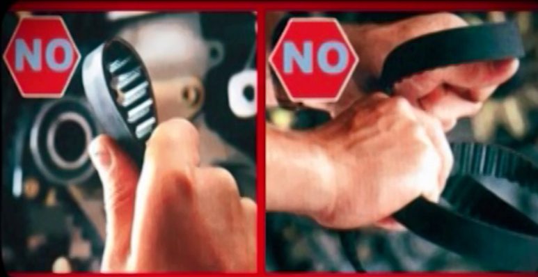 - Es muy importante no doblar o torcer las correas de distribución, ya que estas contienen cuerdas tensoras de fibra de vidrio, muy resistentes a la tracción pero de baja resistencia a la fricción excesiva.