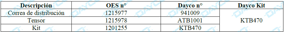 Información técnica Dayco: Kit de Distribución KTB470