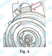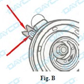 • Asegurarse que la pestaña de fijación al bloque motor del cojinete tensor esté correctamente introducida (Fig. A).