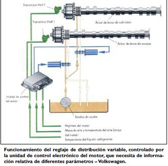 Se trata de un sistema que se aplica a los árboles de levas de admisión y de escape y funciona de acuerdo al régimen de velocidad y al estado de carga del motor. Este sistema, que se aplica a los árboles de levas de admisión y de escape, y funciona de acuerdo al régimen de velocidad y al estado de carga del motor. Este sistema, pone en vigencia en cada motor que se aplique, los tiempos de distribución más adecuados a las condiciones operativas que se presentan en ralenti o marcha lenta, máxima potencia y máximo par motor, y cuando se utiliza la Recirculación de los Gases de Escape (EGR).