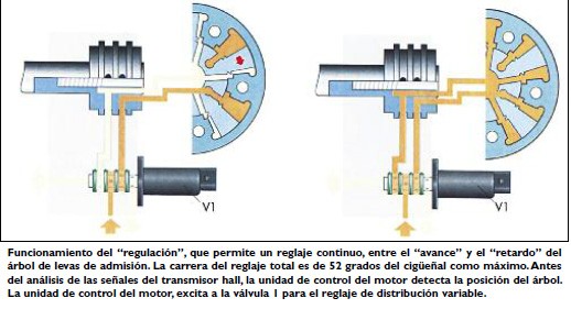 Cabe destacar que, la "regulación" permite llevar a cabo el reglaje continuo, entre el "avance" y el "retardo" del árbol de levas de admisión.