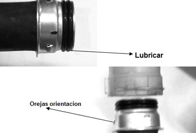 El montaje debe ser lo más perpendicular posible a la boca del radiador. Evitar mover la manguera en forma circular ya que esto deforma las trabas. El desmontaje debe ser en forma manual, no utilizar destornilladores u otros elementos similares como "palanca" ya que esto deformaria las orejas traba. Al cambiar una manguera siempre colocar primero el extremo de acople, y luego el extremo que se sujeta con abrazadera. Este sistema no admite múltiples montajes y desmontajes, ya que con estos se va perdiendo "tensión" de las trabas. Si la manguera ya fue colocada y sacada varias veces, recomendamos colocar una nueva.