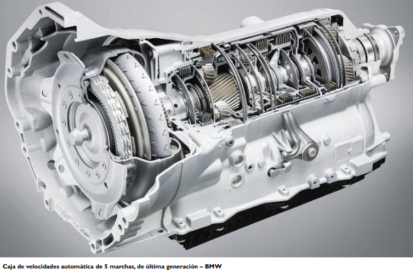 La cupla motriz o el par motor, suministrado por el motor al eje primario a través del embrague, pasa al eje secundario, de allí al diferencial, y después a las ruedas motrices. La transmisión automática se caracteriza por el denominado convertidor de par, que pone en contacto al propulsor con el mecanismo interno de la caja misma. Este mecanismo permite efectuar un cierto número de relaciones (por ejemplo tres hacia adelante y una marcha atrás), aprovechando la acción de los trenes epicicloidales. La colocación o inserción de estas relaciones se realizan obviamente de manera automática y sin interrupción de la transmisión del par motor. Los trenes epicicloidales son gestionados por medio de componentes mecánicos, hidráulicos, eléctricos y electrónicos. La cupla motriz o par motor a la salida de la transmisión automática es enviada posteriormente a las ruedas motrices a través del diferencial.